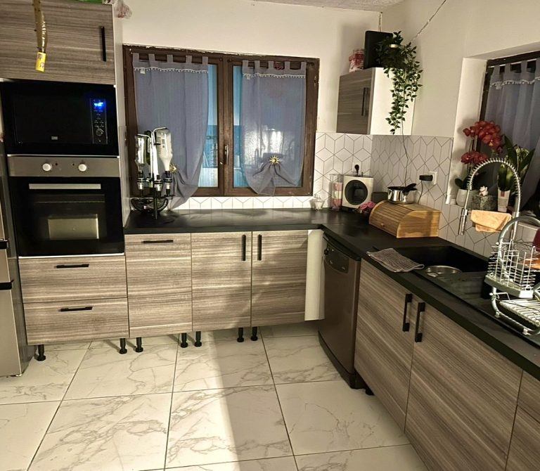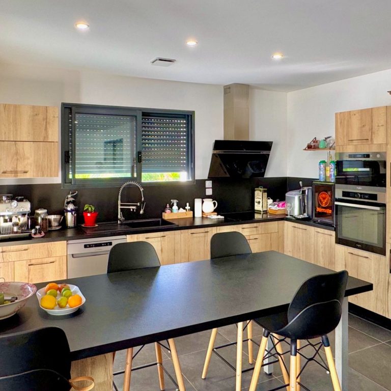 La cuisine est moderne, entièrement aménagée et équipée :